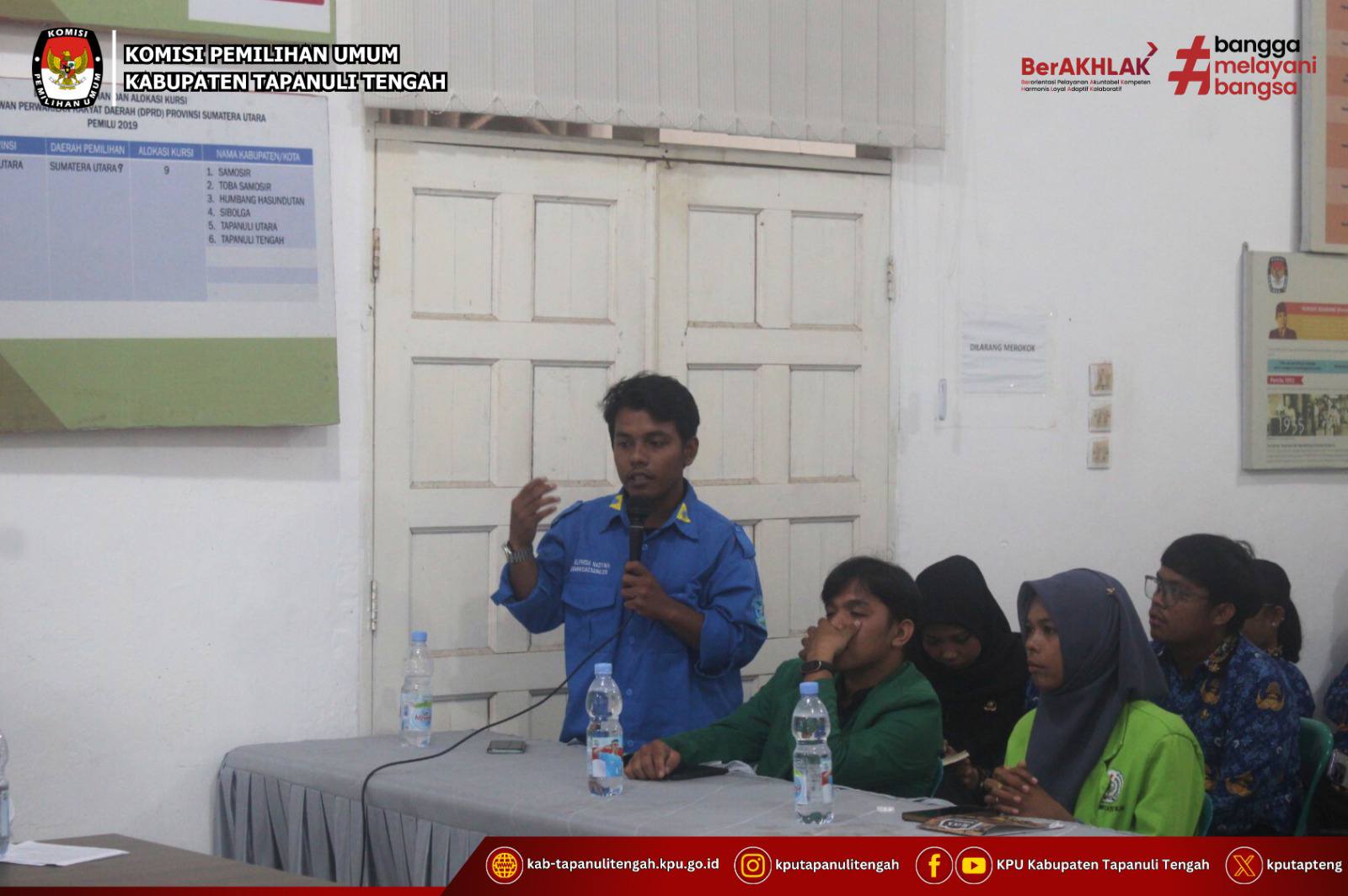 Selanjutnya, kegiatan diisi dengan diskusi dua arah yang dipimpin oleh Sekretaris KPU Kabupaten Tapanuli Tengah, Juliana Hutasuhut, yang berlangsung aktif bersama peserta forum.