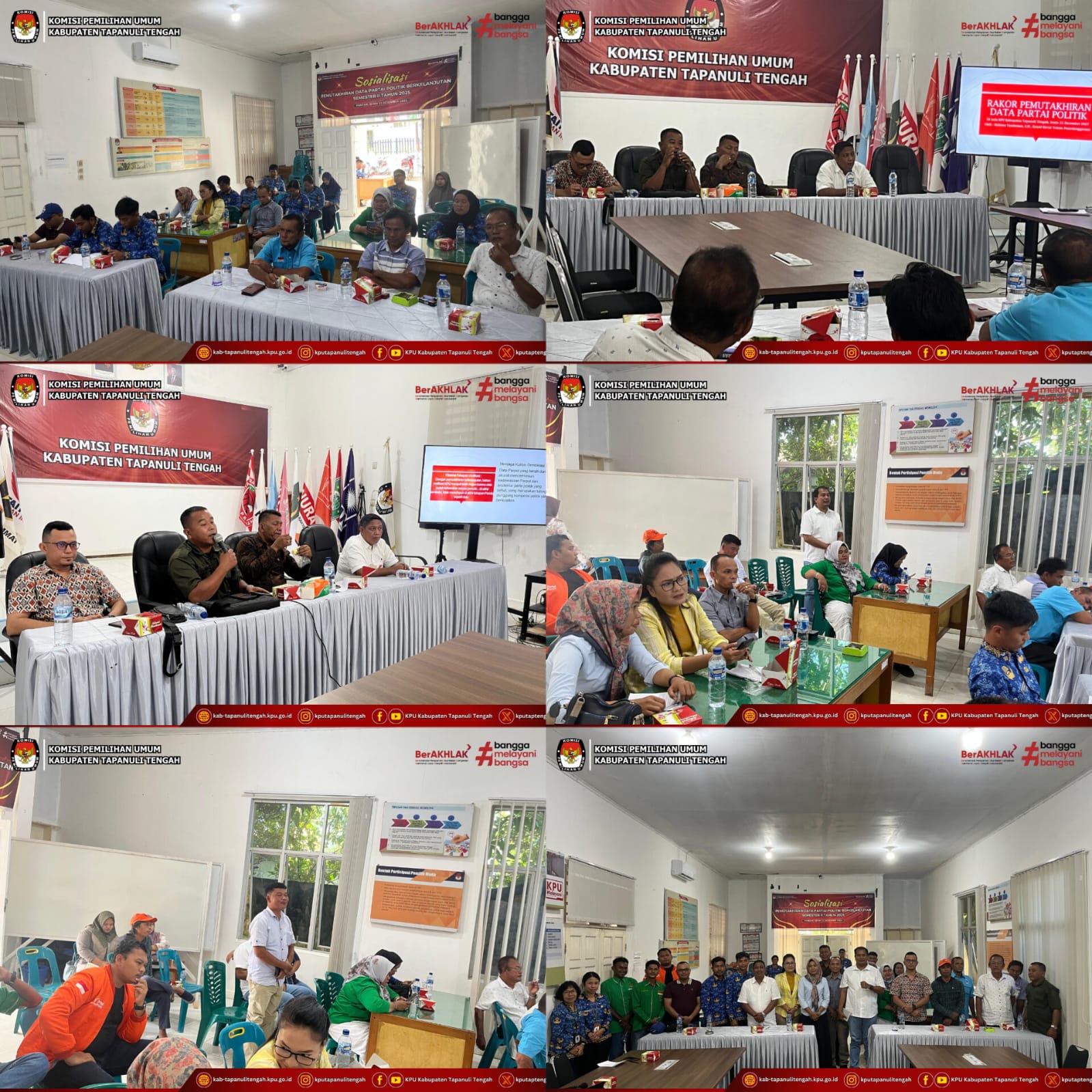 KPU Kabupaten Tapanuli Tengah melaksanakan kegiatan Sosialisasi Pemutakhiran Data Partai Politik Secara Berkelanjutan melalui Aplikasi Sistem Informasi Partai Politik (SIPOL), bertempat di Aula KPU Kabupaten Tapanuli Tengah, Senin (22/12/2025).