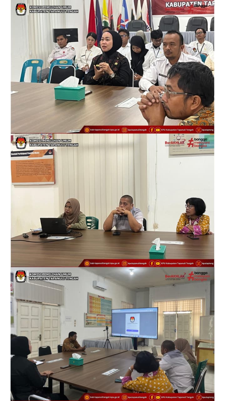 Komisi Pemilihan Umum (KPU) Kabupaten Tapanuli Tengah menggelar kegiatan knowledge sharing pengenalan aplikasi perjalanan dinas, Kamis (22/1/2026), di Aula Kantor KPU Kabupaten Tapanuli Tengah.