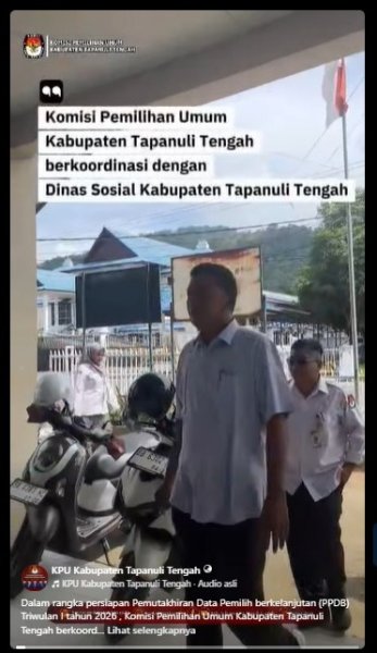Dalam rangka persiapan Pemutakhiran Data Pemilih berkelanjutan (PPDB) Triwulan I tahun 2026 , Komisi Pemilihan Umum Kabupaten Tapanuli Tengah berkoordinasi dengan Dinas Sosial Kabupaten Tapanuli Tengah pada Senin (2/3/2026).