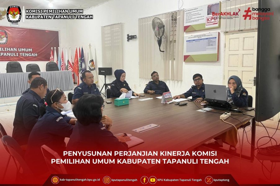 Komisi Pemilihan Umum (KPU) Kabupaten Tapanuli Tengah melaksanakan rapat internal penyusunan Perjanjian Kinerja pada Selasa (3/3/2026). Rapat tersebut dipimpin langsung oleh Sekretaris KPU Kabupaten Tapanuli Tengah dan dihadiri oleh seluruh Kepala Subbagian serta staf terkait. Kegiatan ini dilaksanakan di Aula KPU Kabupaten Tapanuli Tengah.