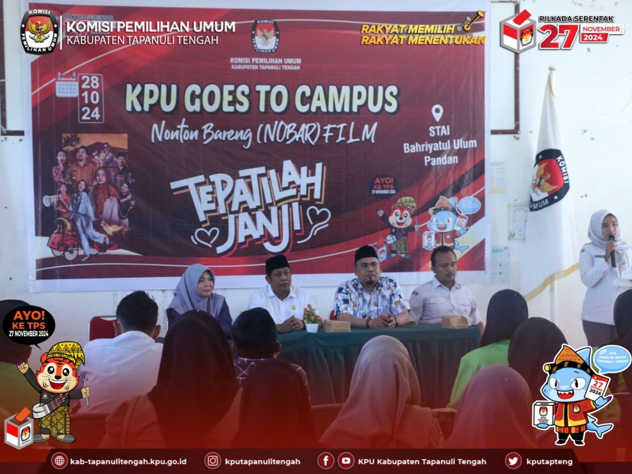 Kegiatan ini dihadiri pula oleh Mahasiswa/i STAI Bahriyatul Ulum Pandan. Nonton Bareng Film "Tepatilah Janji" merupakan salah satu upaya KPU dalam menyosialisasikan kepada pemilih agar lebih memahami makna pentingnya memilih dalam Pilkada Serentak Tahun 2024 nanti.