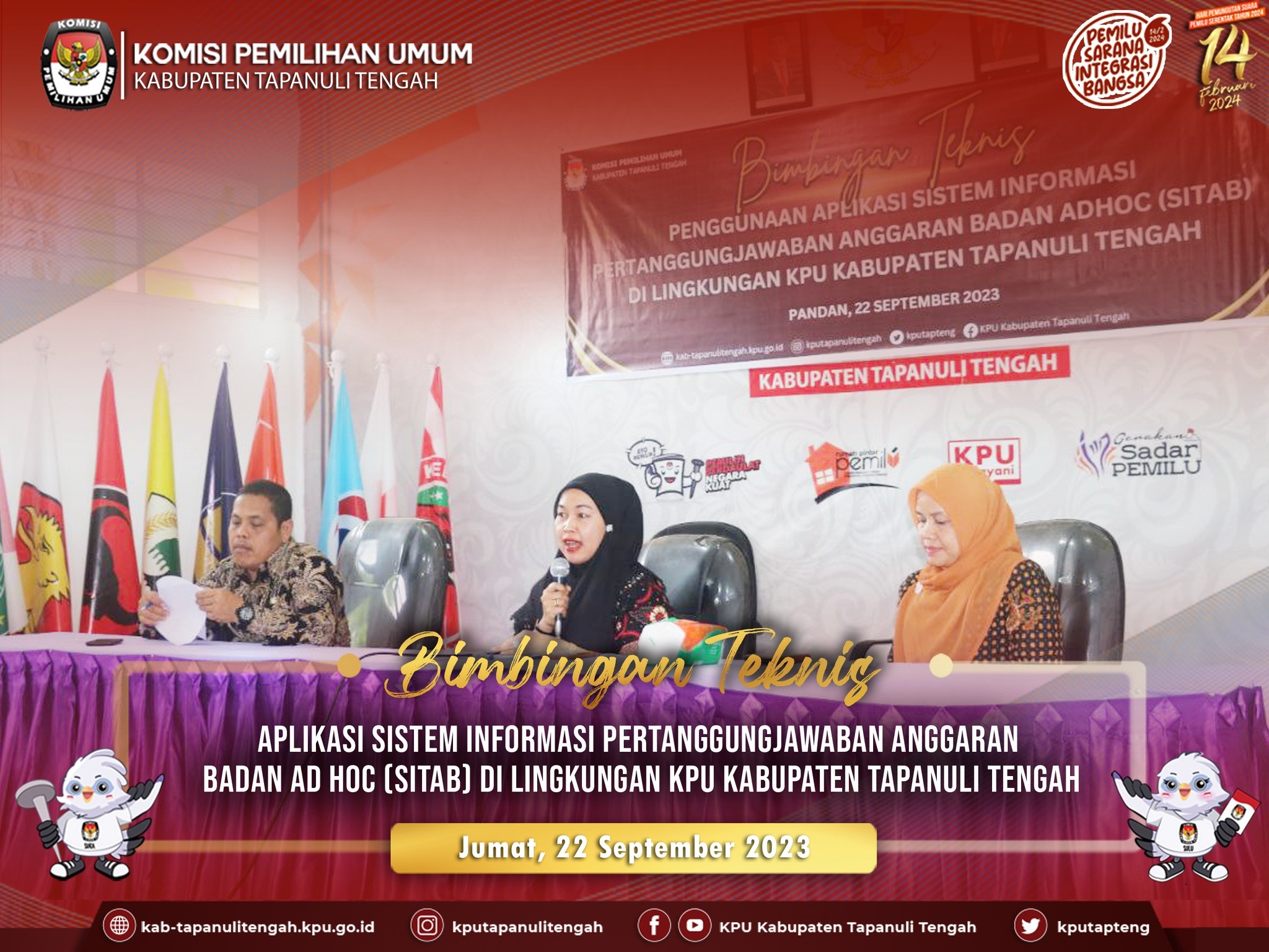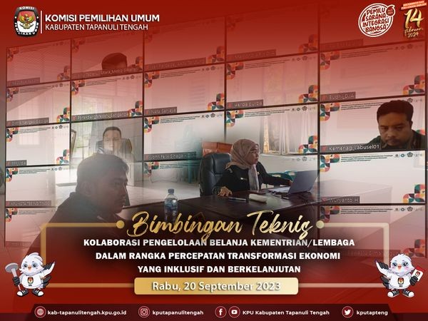 Dalam Kegiatan Bimbingan Teknis ini dihadiri secara daring oleh Sekretaris KPU Kabupaten Tapanuli Tengah, Juliana Hutasuhut dan Kasubbag Perencanaan Data dan Informasi KPU Kabupaten Tapanuli Tengah, Sudirman Silaen. Kegiatan Bimtek yang dilaksanakan ini mengusung tema "Kolaborasi Pengelolaan Belanja Kementrian Lembaga Dalam Rangka Percepatan Transformasi Ekonomi yang Eksklusif dan Berkelanjutan", Rabu, (20/09/23)