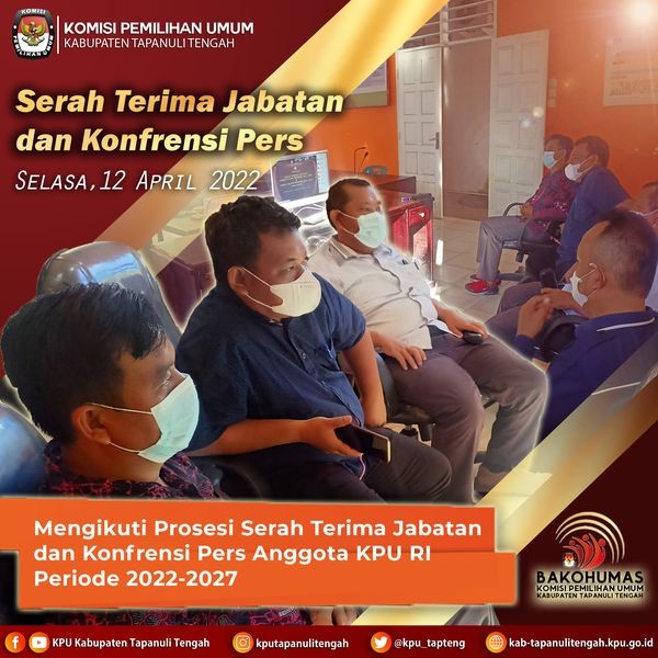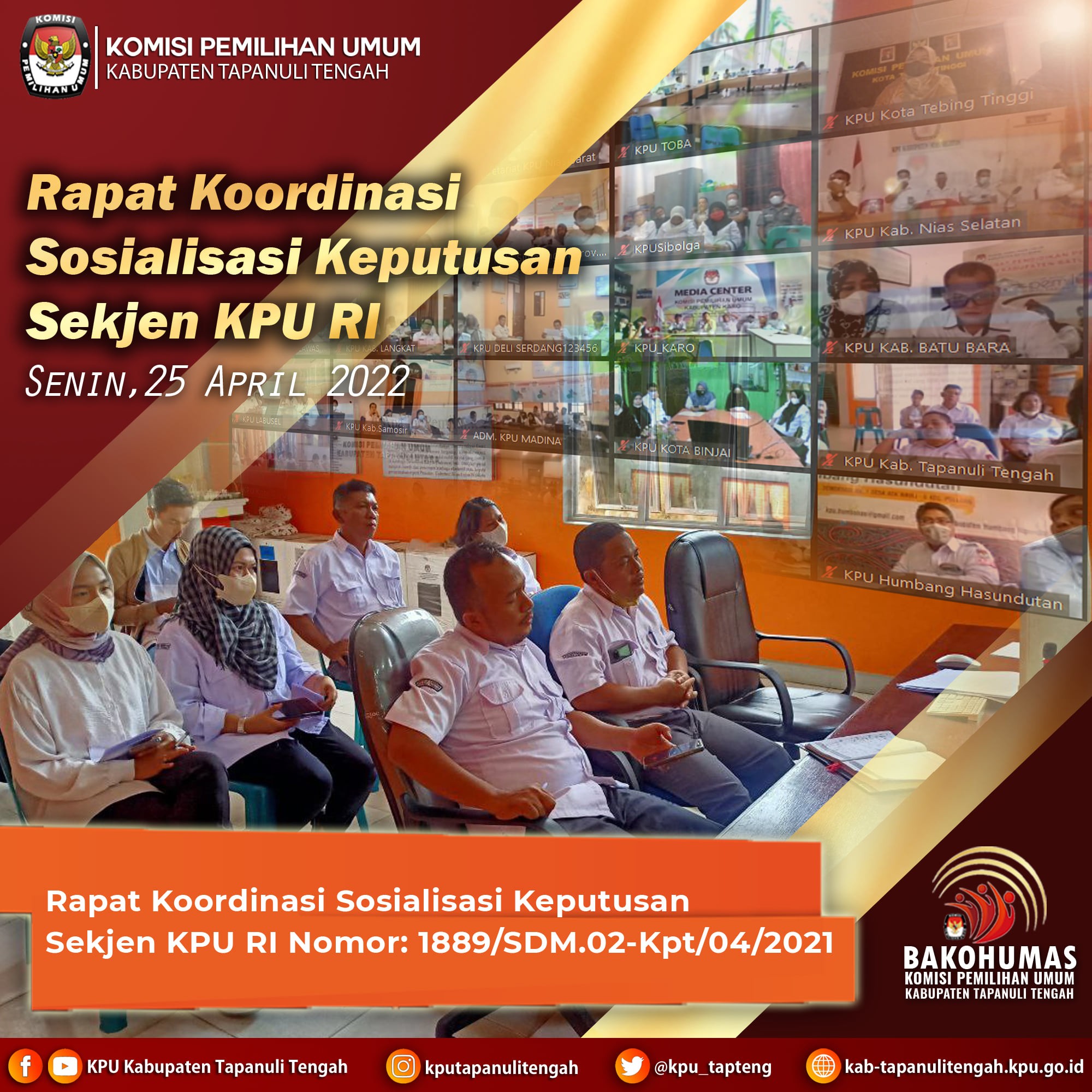 KPU Kabupaten Tapanuli Tengah mengikuti Sosialisasi Keputusan Sekjen KPU RI Nomor: 1889/SDM.02-Kpt/04/2021 Tentang Perubahan Atas Keputusan Sekjen KPU RI Nomor 652/SDM.01-Kpt/05/SJ/VI/2021 Tentang Petunjuk Teknis Pengangkatan Pegawai Pemerintah Non Pegawai Negeri (PPNPN) Pada Sekretariat Jenderal KPU, Sekretariat KPU Provinsi dan Sekretariat KPU Kabupaten/Kota. Kegiatan yang dilaksanakan pada Pukul 13.45 Wib secara daring via Aplikasi Zoom Meeting oleh KPU Provinsi Sumatera Utara ini dihadiri oleh Kasubbag Keuangan, Umum dan Logistik, Iyasir Hasibuan, Kasubbag Hukum dan SDM, Maruli Nasution dan PPNPN di lingkungan Sekretariat KPU Kabupaten Tapanuli Tengah, Senin, (25/04/22).